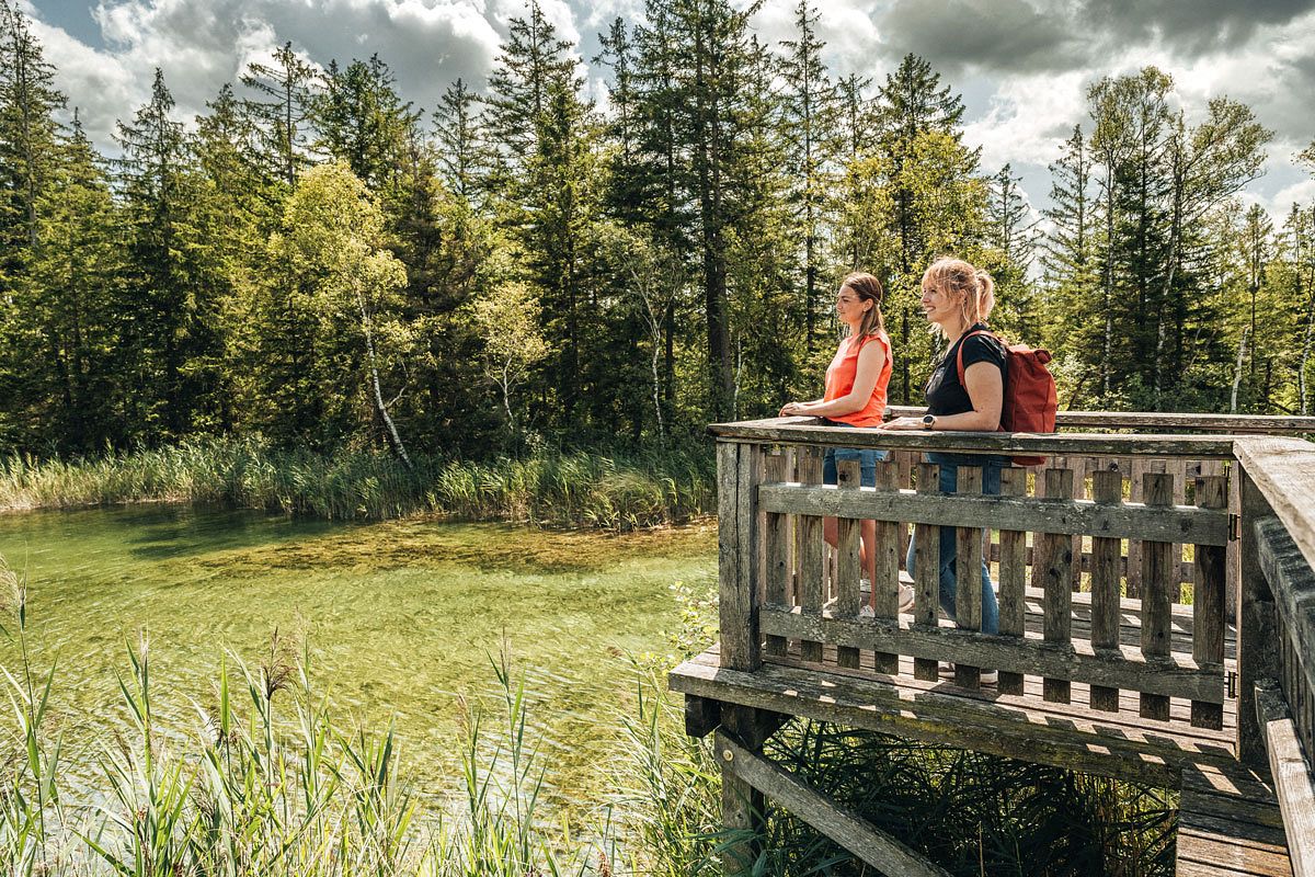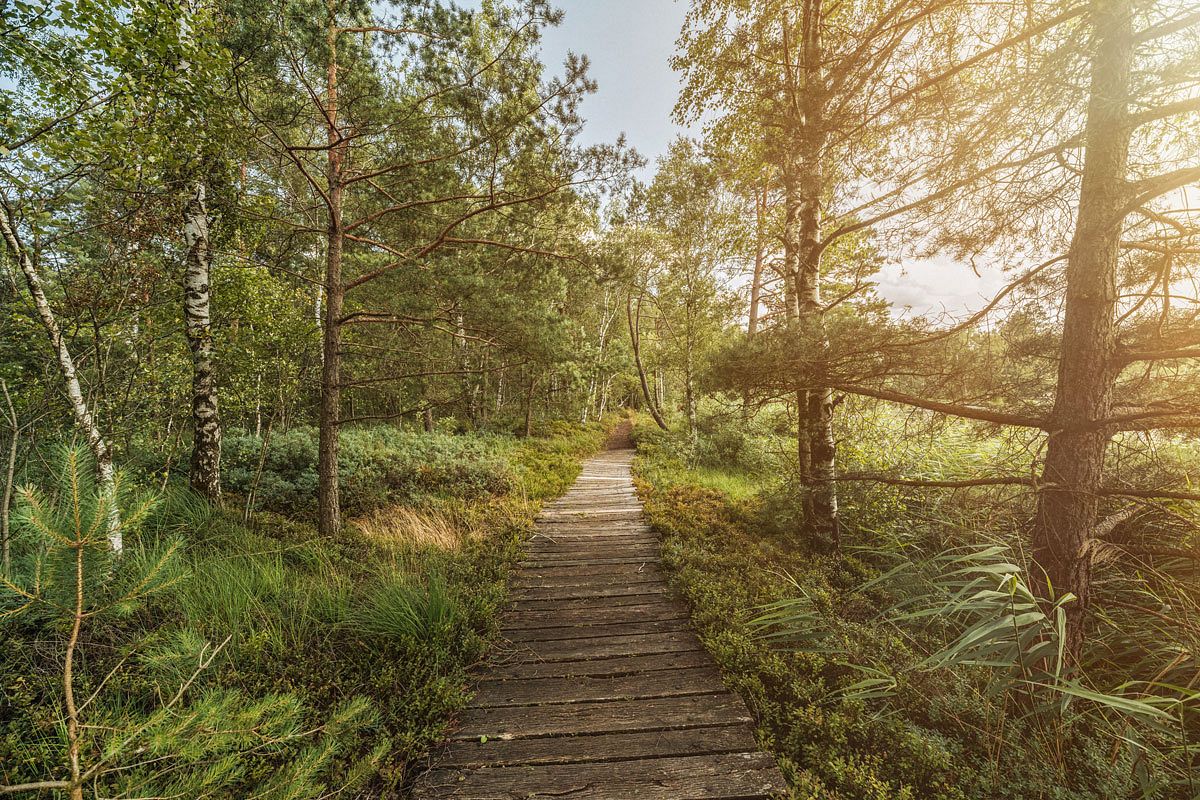 Der Weg führt mitten durch das Naturschutzgebiet des Wurzacher Rieds, das größte zusammenhängende und noch intakte Hochmoor Mitteleuropas sowie eines der größten Naturschutzgebiete Baden-Württembergs. Der Moor-Weg beginnt und endet am Kurhaus/ Torfstecher, einem perfekten Ausgangspunkt für die Wanderung. Der Weg führt auf Bohlenpfaden und Moorwegen, die einen direkten Zugang zu den besonderen landschaftlichen Merkmalen des Wurzacher Rieds bieten. Besonders beeindruckend ist der Wegabschnitt, der am Riedsee entlangführt. Der ehemalige Torfstich fügt sich harmonisch in die Moorlandschaft ein. Diese Kombination aus Wasser, Moor und Wald schafft eine einzigartige Atmosphäre, die zum Innehalten und Staunen einlädt.
