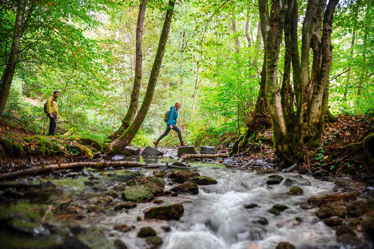 Einfach losgehen und den Alltag hinter sich lassen: Auf urigen Pfaden und Wegen führt der Fernwanderweg durch das malerische Siegtal und über die umliegenden Höhen. Jede der 14 Etappen des Natursteig Sieg startet an einem Bahnhof und ist auch einzeln ohne große Planung begehbar.