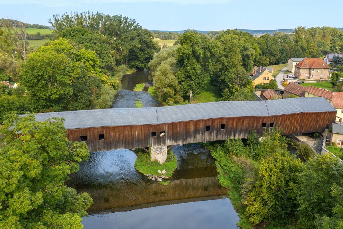 Ein weiteres Juwel ist Wünschendorf mit der imposanten Kirche St. Veit und der romantischen Holzbrücke, die den Fluss überspannt und einen Moment innehalten lässt – perfekt für alle, die das Wandern auch als Reise durch Kultur und Zeit verstehen.