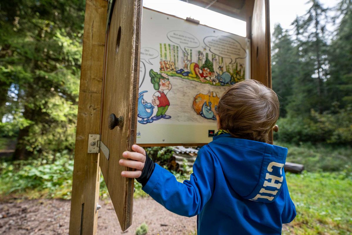 Der Erlebnisweg „Wie wohnt Wasser“ ist wie eine kleine Entdeckungsreise – vom unscheinbaren Tropfen zur lebensspendenden Kraft. Mit den Figuren Tanni und Quelline an eurer Seite erkundet ihr, was geschieht, wenn Wasser fehlt, wie Quellen entstehen und welchen Weg es in unseren Haushalt nimmt. An jeder Station wird das Element Wasser lebendig: mal fließt es, mal sprudelt es, mal lässt es kleine Organismen sichtbar werden. Ihr dürft experimentieren, messen, mit dem Wassertacho das Fließtempo bestimmen und mit allen Sinnen erleben, wie Wasser „wohnt“. Dabei öffnet sich der Blick ins Marbental und in den Schwarzwald – eine Verbindung von Wissensvermittlung und Naturgenuss. Ideal für Familien und kleine Forschende, die neugierig sind und mit Staunen durch den Tag gehen möchten.