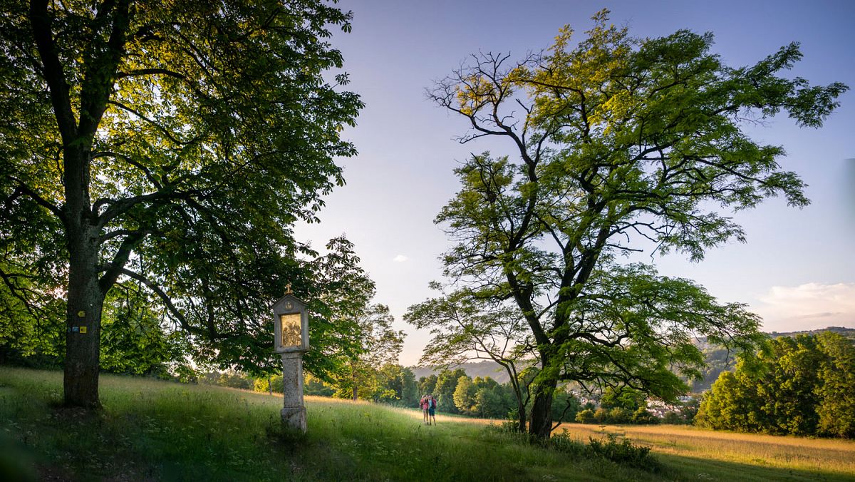 Kaum haben die Wandernden die Altstadt mit den prächtigen Barockbauten hinter sich gelassen, sind sie schon mitten in der Natur. Mal mit Panoramablick über die Dächer und Kirchtürme, mal durch lichten Wald schlängelt sich der Pfad am Hang entlang. Anschließend wird die Altmühl überquert. Vorbei an den mächtigen Bastionen der Willibaldsburg geht es auf den Frauenberg, dem Trockenrasen und eine barocke Kapelle eine mediterrane Atmosphäre verleihen. Über einen historischen Kreuzweg wandert man dem Wald entgegen. Zum Abschluss taucht die Strecke in den Schatten der uralten Buchen ein. Hier gingen einst die Herzöge von Leuchtenberg auf die Jagd und in einer geheimnisvollen Höhle versammelten sich nachts die Illuminaten. Eine Einkehr macht den Wandergenuss perfekt – Gelegenheiten gibt es sowohl unterwegs als auch nach der Tour in der Eichstätter Altstadt.