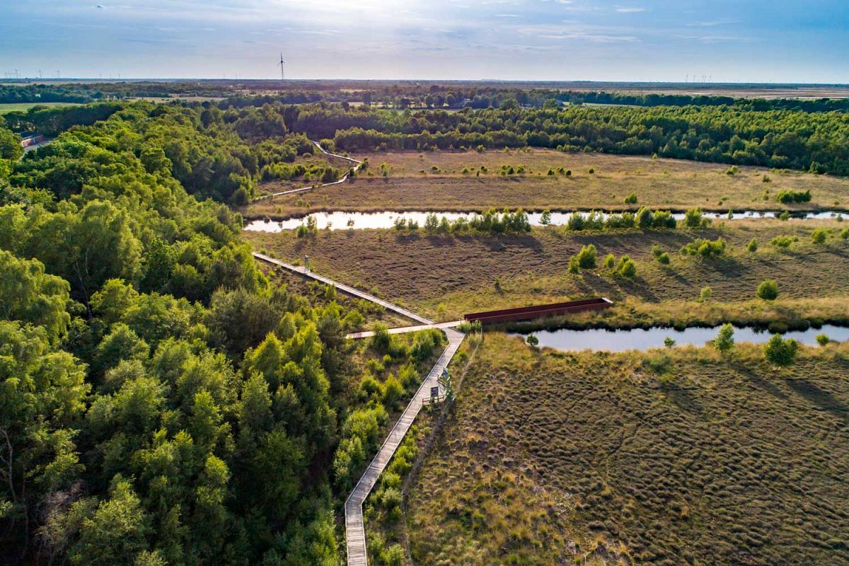 Entlang von Mooren: Feuchtwiesen, seltene Vögel, stille Moorlandschaft