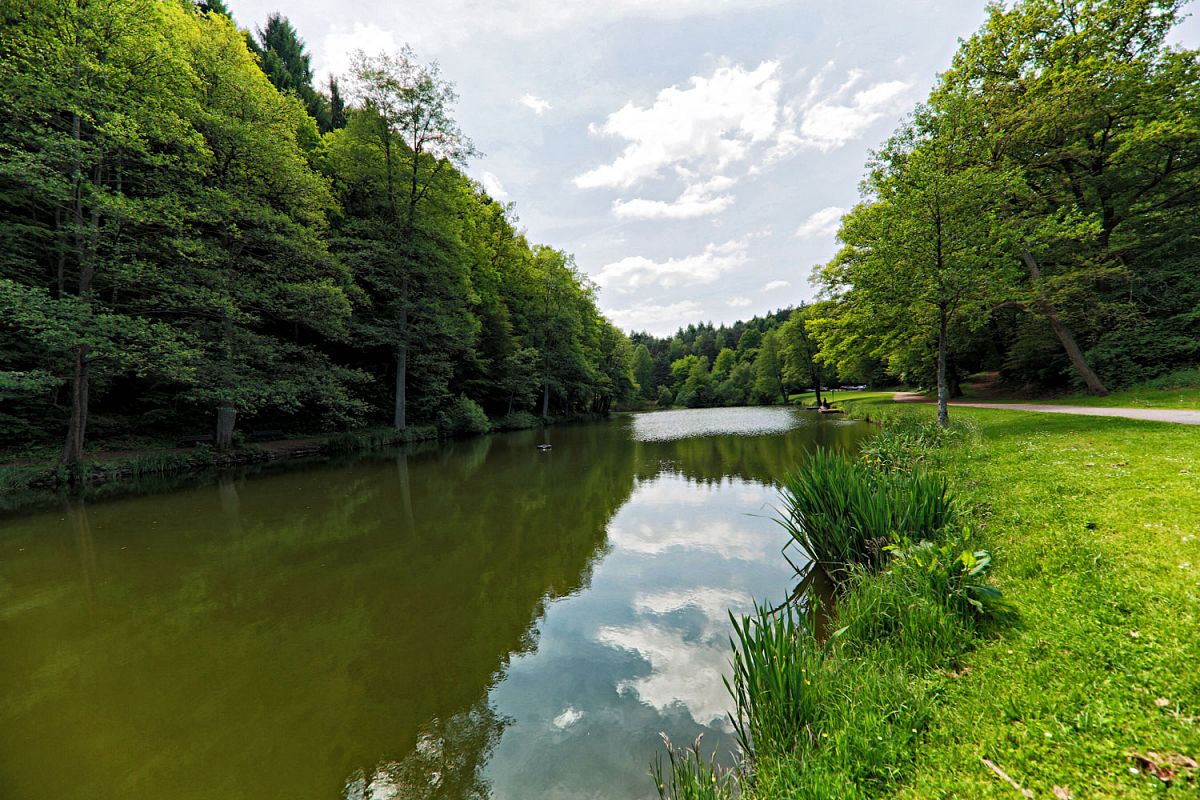 Die Weiher direkt am Wegesrand sind nicht nur eine willkommene Abkühlung an heißen Sommertagen. Die zahlreichen Rastplätze sind mehr als nur Orte, um eine Pause einzulegen. Wer seinen Rucksack vor Beginn der Tour gefüllt hat, kann sich seinen Tisch selbst decken und mitten im Wald genießen. Wer lieber ohne Zusatzgewicht auf Wanderung geht, schätzt die Pfälzer Gastlichkeit im Forsthaus Beckenhof oder im Waldhaus Starkenbrunnen umso mehr. Dort kann man es sich in den Gaststuben oder in den schönen Biergärten bei kühlen Getränken und deftigen Speisen gut gehen lassen.